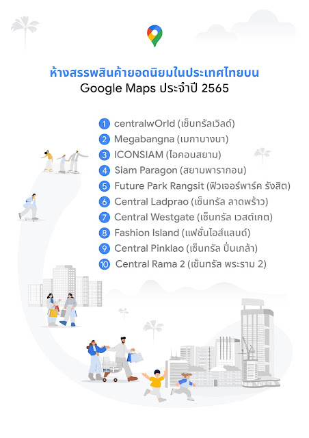 สถานที่ที่ได้รับความนิยมบน Google Maps ในปี 2565